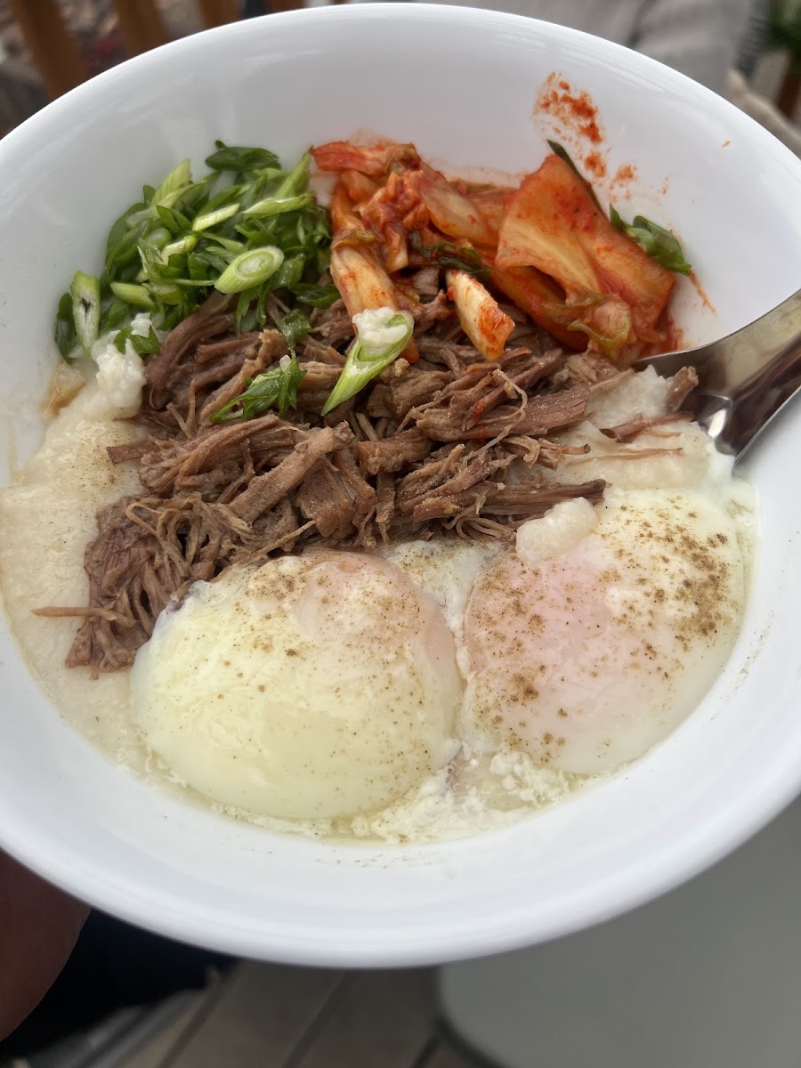 Tl;dr: 3.5 stars. Good congee but expensive for what it is. Ok so the congee was good. I got the beef and kimchi which tasted exactly how it looks and was delicious. My friend got the Tom yum shrimp and said it was excellent. We also tried the classic chicken which is pretty bland compared to the other two - tasted very much like ginger and not much else - wouldn't recommend getting this unless you already know you love traditional congee. If you are new to congee, I'd recommend getting one with more flavorful additions. FYI- you can also ask for white pepper, red pepper flakes, and soy sauce to dress it up more. The donuts were a good addition and dipping them in the congee was nice. Ok let's talk price. I'm giving it 3.5 stars overall because for what it is (rice porridge), it's very expensive. Yes, they are seattle prices, but it's a pretty small operation and I still don't think it should cost $15-20 for a small bowl of congee. Additionally they mixed up our soft boiled egg and gave us a century egg which was not good at all. It was black and rubbery and tasted very strange. Also worth noting the inside was very small with only six tables - five of which fit 2 people and only one table large enough to seat 4. Because we were a larger group, we sat outside which was quite cold. They have a single gas warmer and fire going out there, but that didn't do much and we couldn't feel it at all from where we were sitting. Recommend dressing warm in the off chance you have to sit outside. Food warms you up which is nice! Dogs allowed on the patio outside. Service was good and the people working there were nice.
