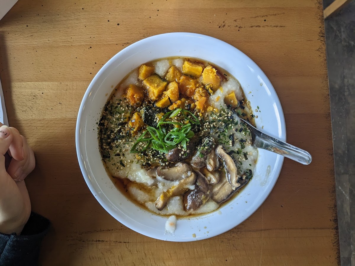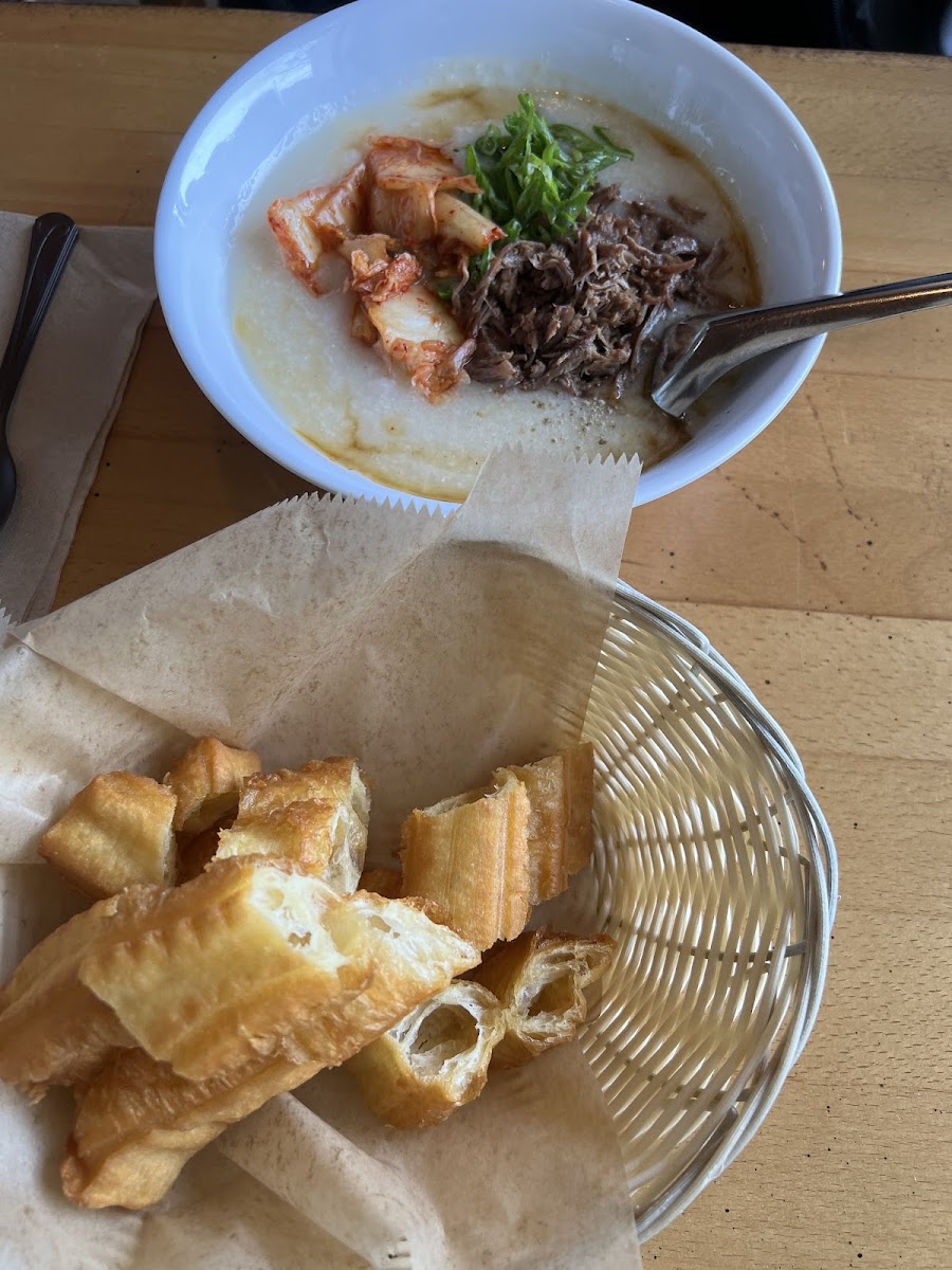 This little gem of a place is well worth the time to get there. It is small and you can miss it. The day we went it was a perfect cold and rainy day in Seattle. This place offers up many great varieties of Congee to choose from. All will warm you up and satisfy you as you will. It go away hungry. Any of the menu items will be great, you have to remember to order the bread to dip into the soup as it's Devine. The owner and staff make sure you are satisfied and happy with your meal and are very accommodating in helping you find a dish. It's a very casual place and dogs are welcome outside. Get here early as it will get busy quickly and it is very small with limited seats.